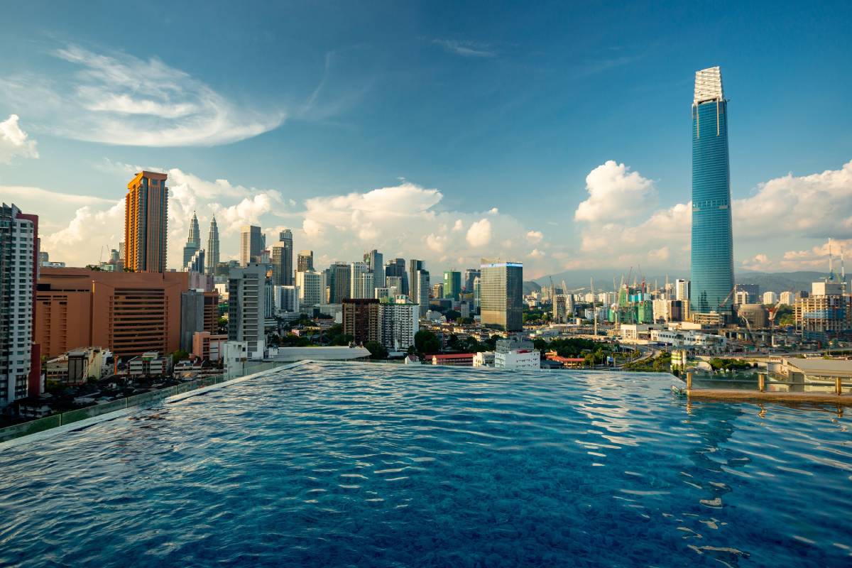 Widok na panoramę Kuala Lumpur z basenu © Shutterstock