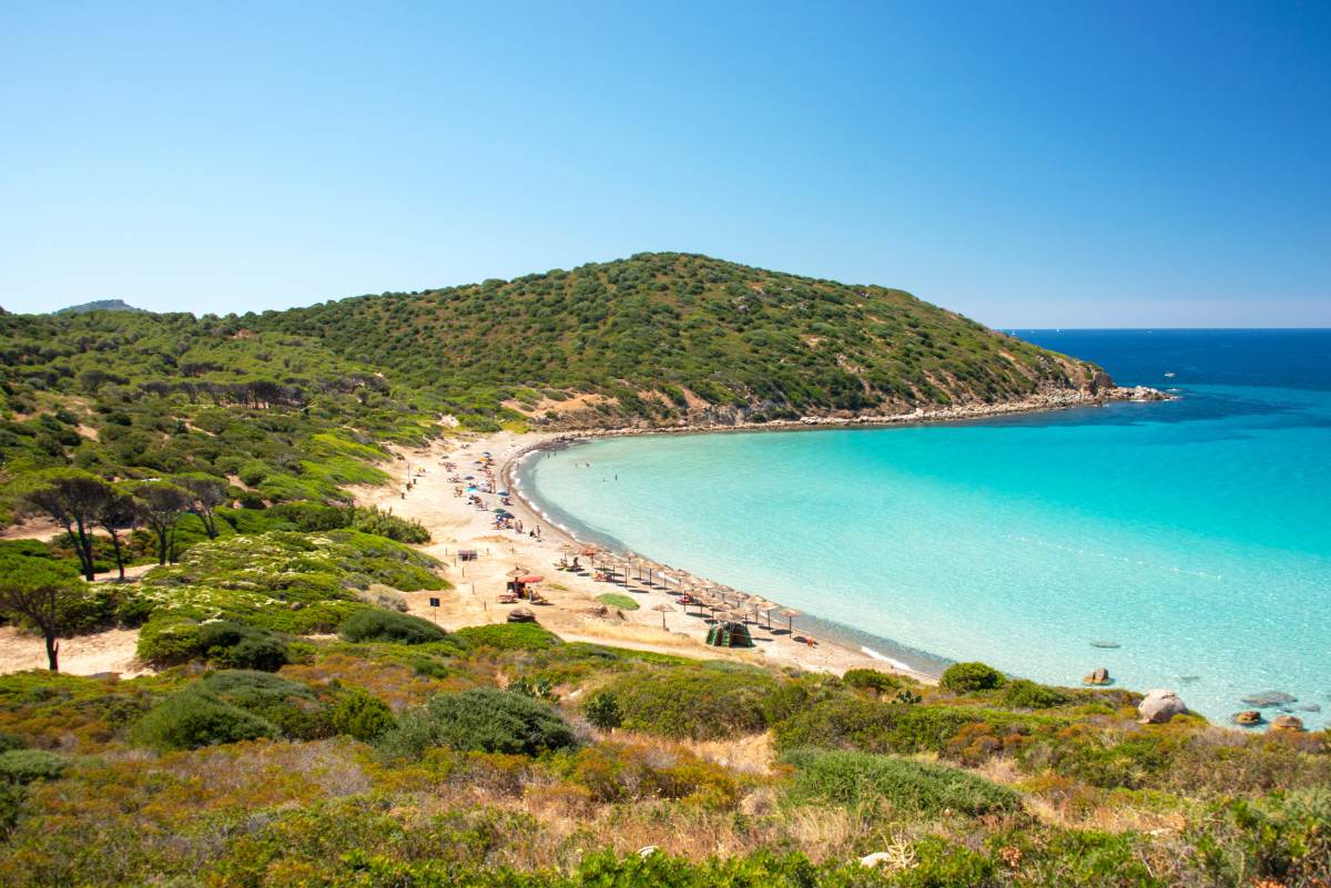 Naprzeciw plaży zobaczysz niewielką wysepkę, do której przy dobrej pogodzie możesz dopłynąć wpław lub kajakiem. Widok na turkusową zatokę i okoliczne wzgórza sprawia, że Tuerredda Beach uchodzi za jedną z najpiękniejszych plaż południa Sardynii.