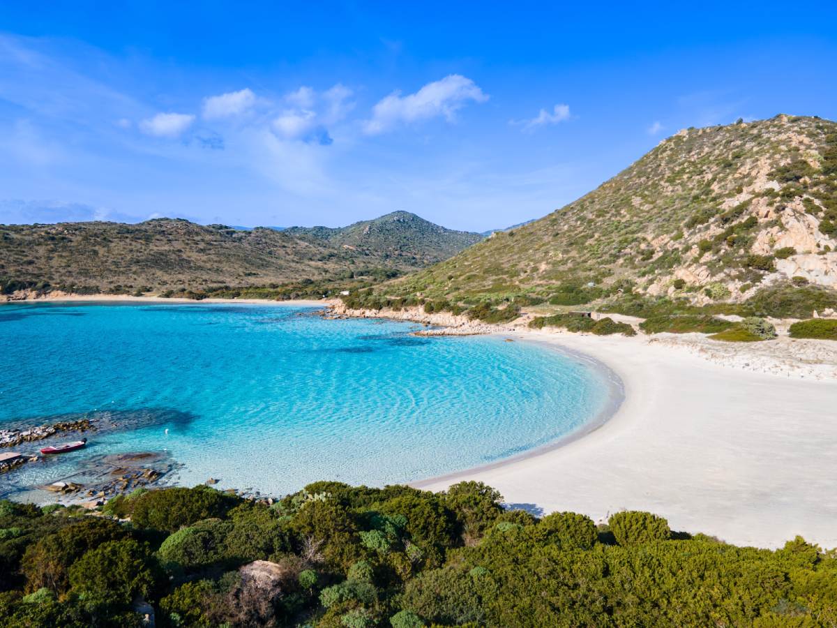 Su Giudeu – szeroka plaża z wydmami i widokiem na wysepkę